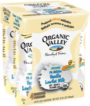 Look for Organic Valley Single Serve Milk in individual 8-oz packages, convenient 4-packs, and new 24-pack cases. Also available in white, strawberry & chocolate!