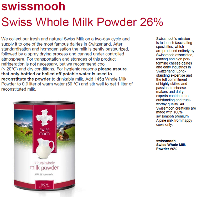 • 100% Swiss made: all products are prepared by skilled and dedicated Swiss cheesemakers, using pure Swiss milk from healthy and happy cows.