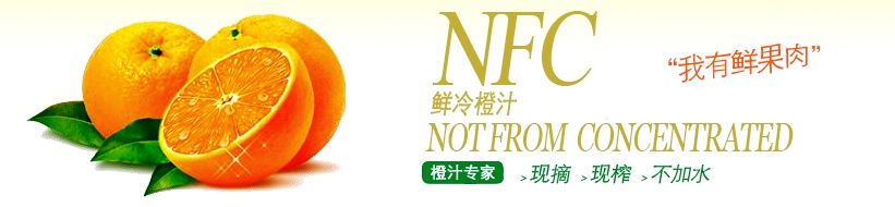 NFC橙汁即非浓缩还原(英文Not From Concentrate,简称NFC)果汁,又称鲜冷橙汁,从原料选择、采收、运输、加工、储藏均有严格要求。果实离树24小时内加工榨汁,大限度地保存鲜橙的风味和营养。